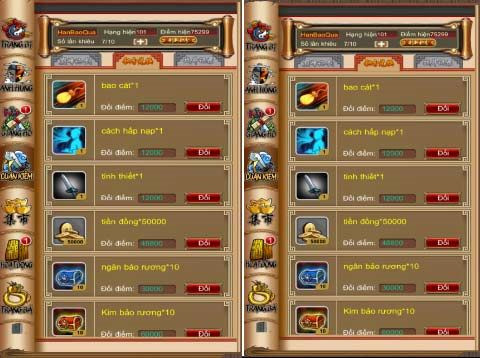 - Chiêu Mộ Anh Hùng: chiêu mộ 50 nhân vật nổi bật với các chiêu thức và sức mạnh khác nhau chia làm 5 cấp là: trắng, lục. lam, tím, vàng